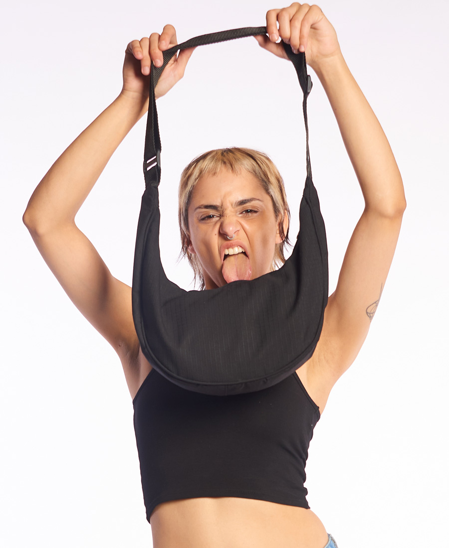 Cartera Isabel La Católica Media Luna Pouch sb. Nylon. Cierre diente de perro. Bolsillo interno. Detalle marcario en avios.