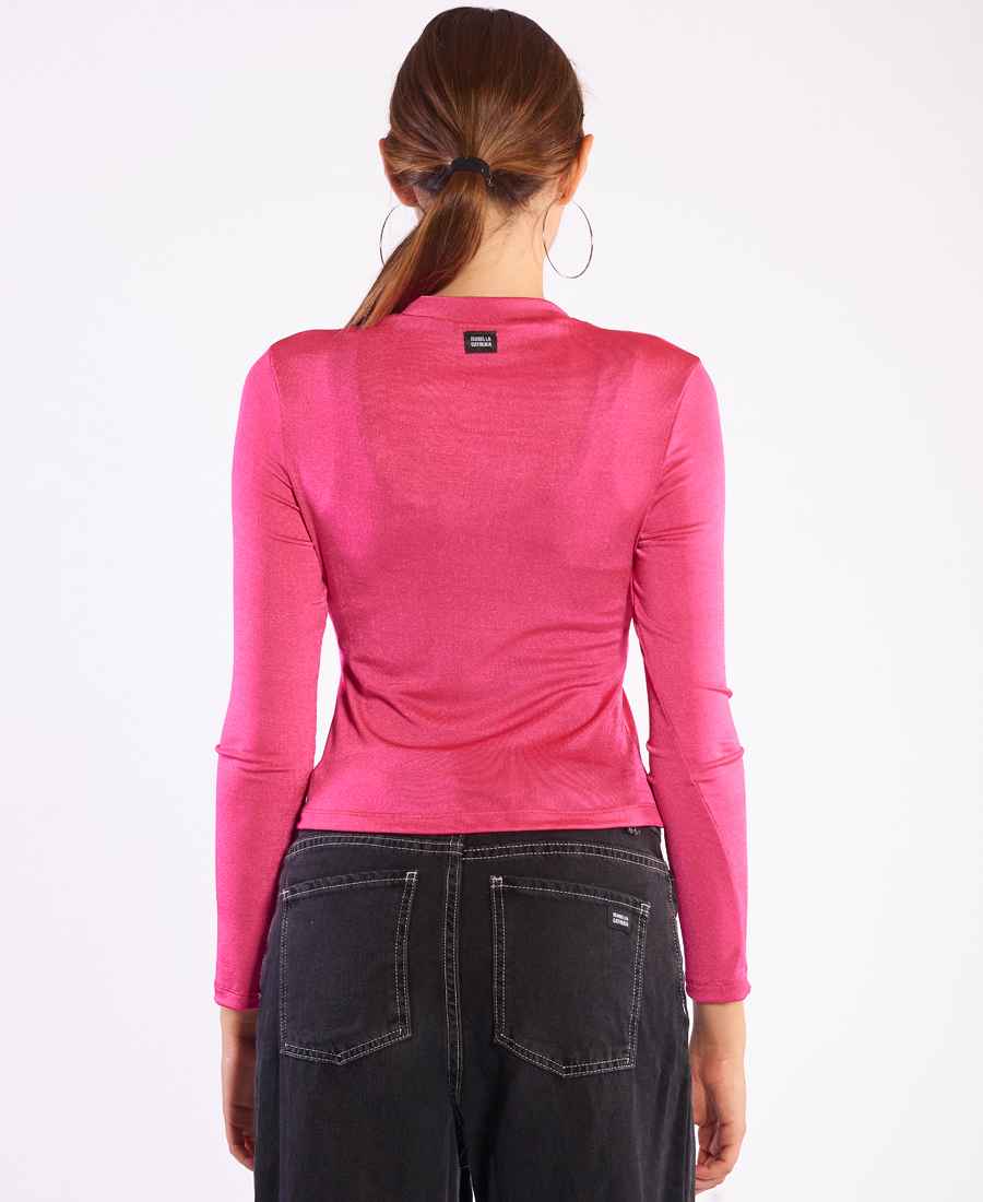 Remera manga larga Isabel La Católica Hi Neck. Knitting Crepe liso brilloso. Cuello medio redondo .